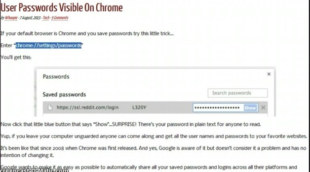 In an incredible revelation, a YouTube user illustrates in his video that Google Chrome users are susceptible to having their passwords, ALL of their passwords displayed for all to see.
