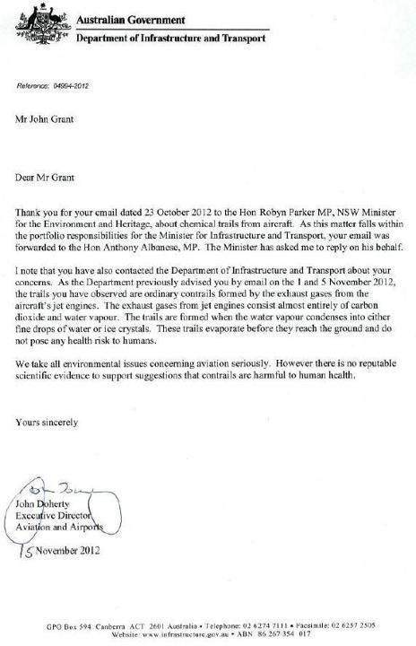 There are literally hundreds of these types of videos on the Internet. This is nothing new and has been documented by people like myself all over the world. So what’s the big secret? Why is the government so hesitant to talk about what the are clearly doing? The below letter was a response to a letter and information sent to Queensland Government Ministers.