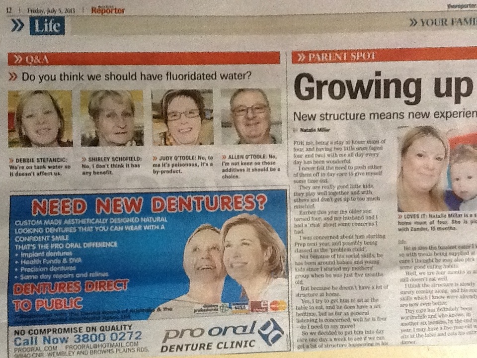 In the Friday July 5th issue of the Logan Reporter, a community newspaper in Logan City south of the Queensland capital, page 12 revealed a rather interesting truth. It appears the public is waking up to the fact that toxic waste is being added to their water supply in addition to the realisation that our right to choose whether we want it in there or not has been taken away.