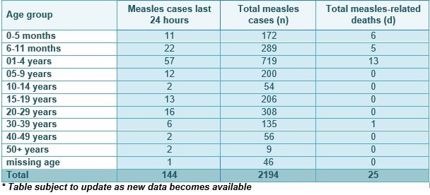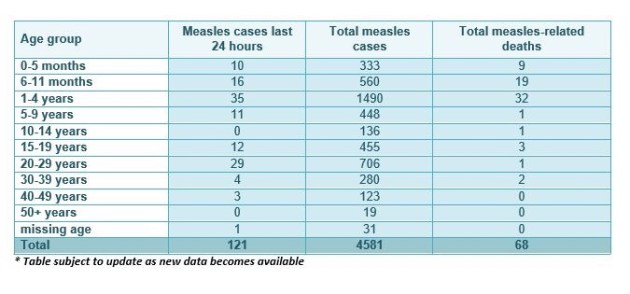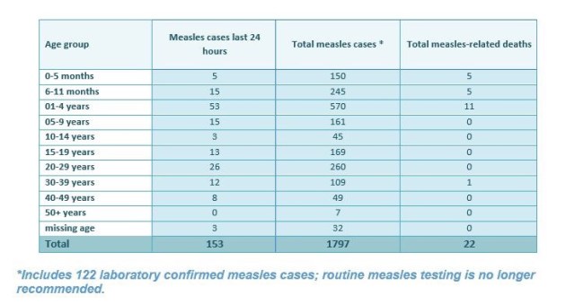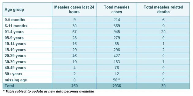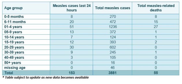 Anyway, if you’re following the news there, you know that now over 50 people have died of “unconfirmed” measles cases. They are not lab testing the presenting infections. They have lab tested a few but by and large they are not testing: they are assuming.