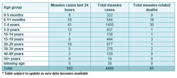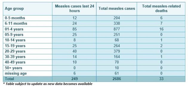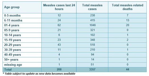 - October 2nd a further 8 suspected measles tests sent to Australia. 3 of which confirmed to be measles.
