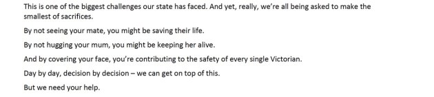The Orwellian Doublespeak and Doublethink flowing out of the Victorian government authorities is overwhelming to say the least.