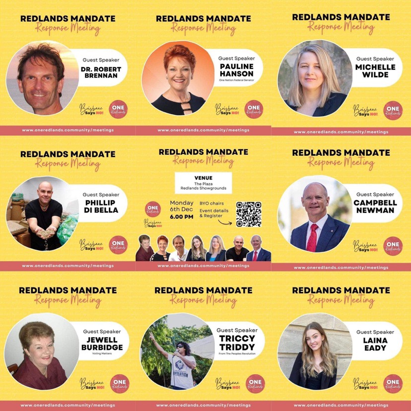 Within three days, on Friday 3rd December, the One Redlands committee had organised an event with One Nation Senator Malcolm Roberts, which was attended by close to six hundred concerned residents, many of whom had businesses which have been negatively affected by the State government’s Covid directives over the previous two years. To add insult to injury, Premier Annastacia Palaszczuk 17th December proposal of further discrimination against the “unjabbed” will put further pressure on these already struggling local businesses. Hundreds signed a petition which reads: “We, the undersigned, request that Council Informs the Queensland State Government that: We the people do not support the Queensland State Government’s mandates of compulsory vaccination and the discrimination it represents. My body, my freedom of choice”. This will be presented to Redlands Council on Tuesday 7thDecember.