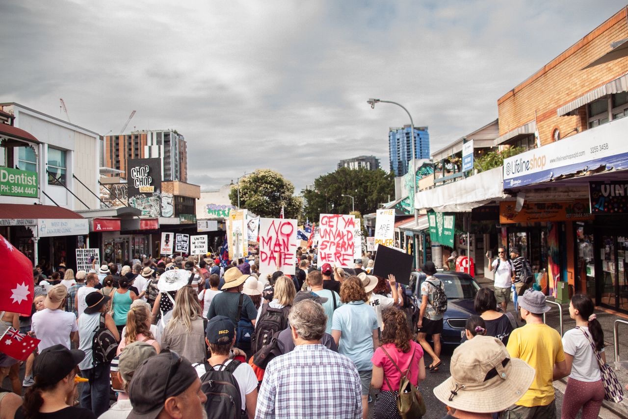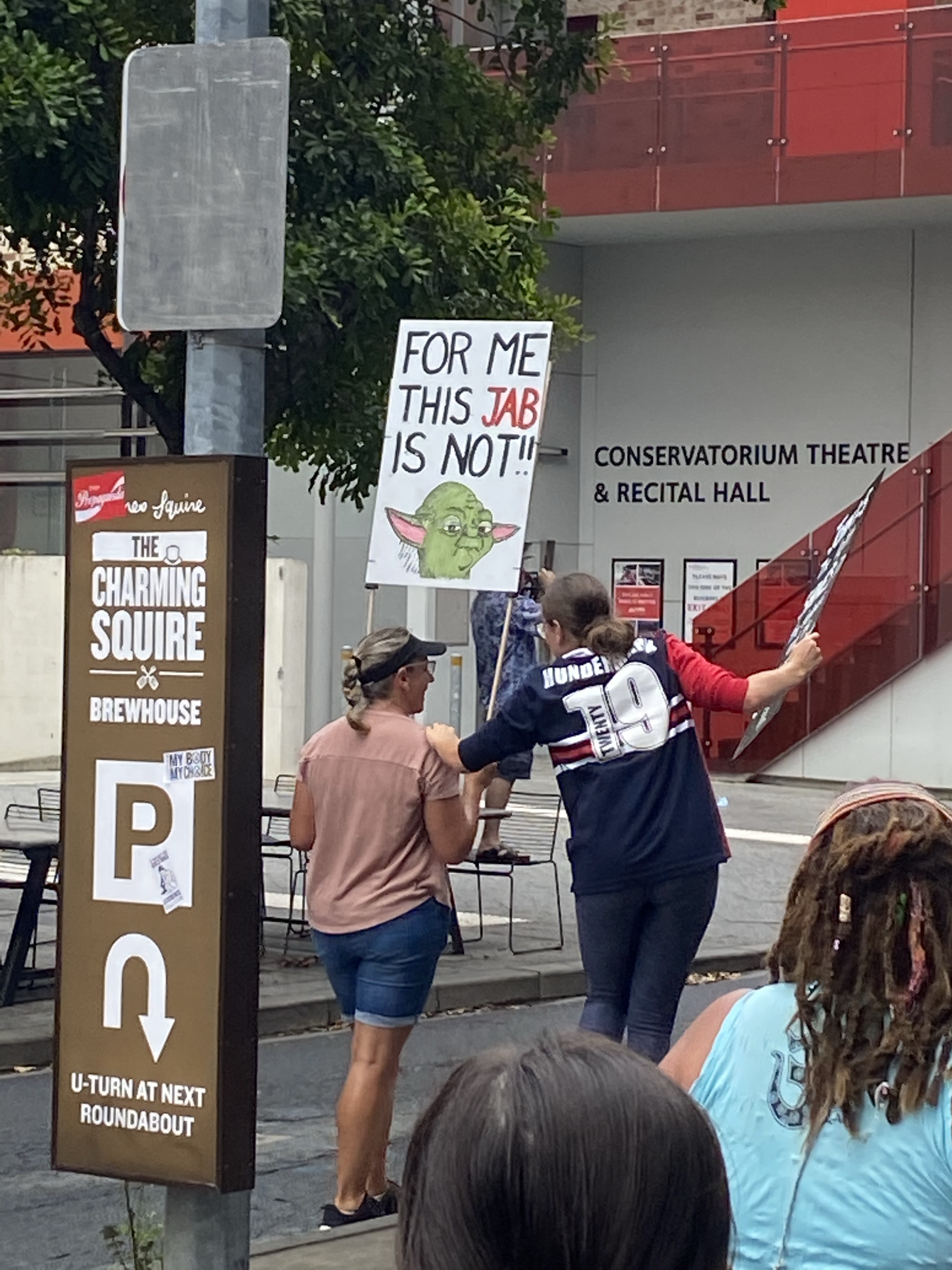 The march took a path through West Ends popular dining district. Many pubs, boutique restaurants and drinking establishments which are known for being packed on a Saturday afternoon were half full at best. Numbers were clearly down since the implementation of Vaccine Passports here in Qld.